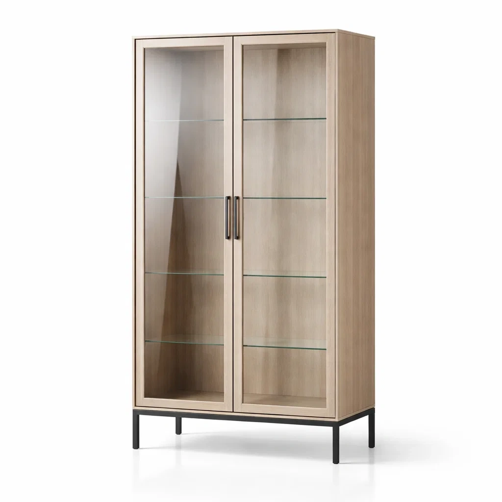 Vitrine en Bois avec Portes et Étagères en Verre