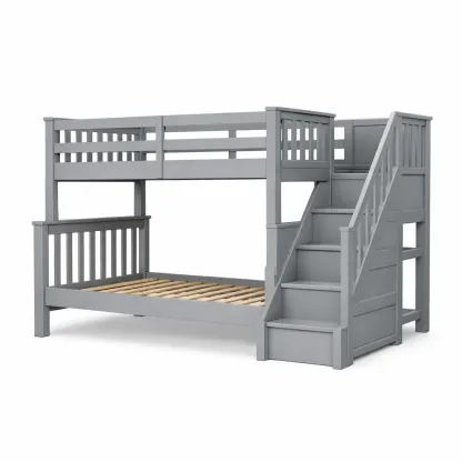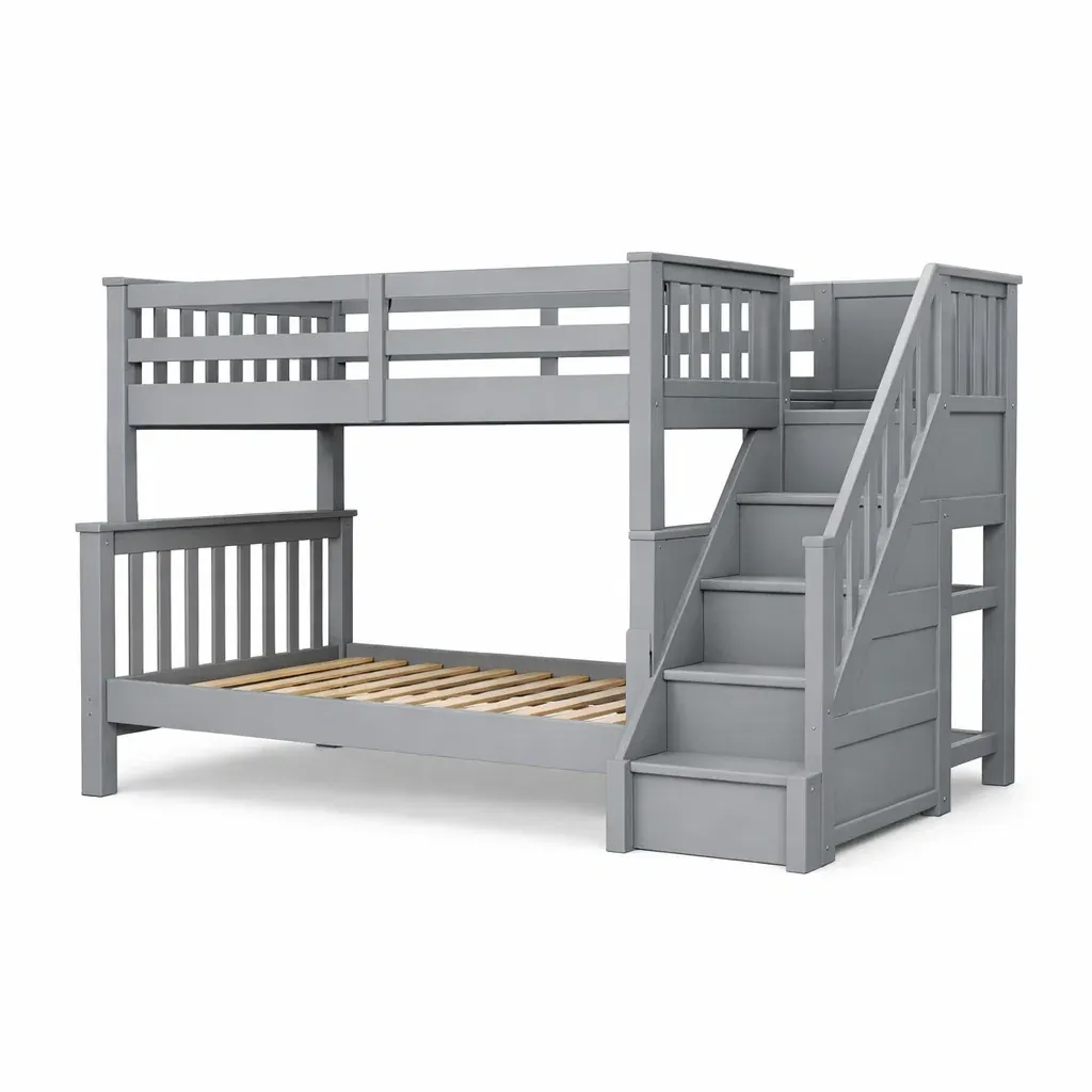 Lit superposé en Bois avec Escalier et Rangement Gris