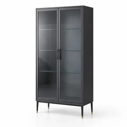 Vitrine en Métal Noir avec Verre Trempé et Portes Battantes